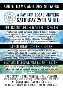 The South Hams Author’s Network has a Local Writer’s day on Saturday 25th at the Endsleigh Garden Centre from 10:30 to 3:30pm, with a Publishing Forum and a chance to chat with fellow writers. Free entry and free parking.